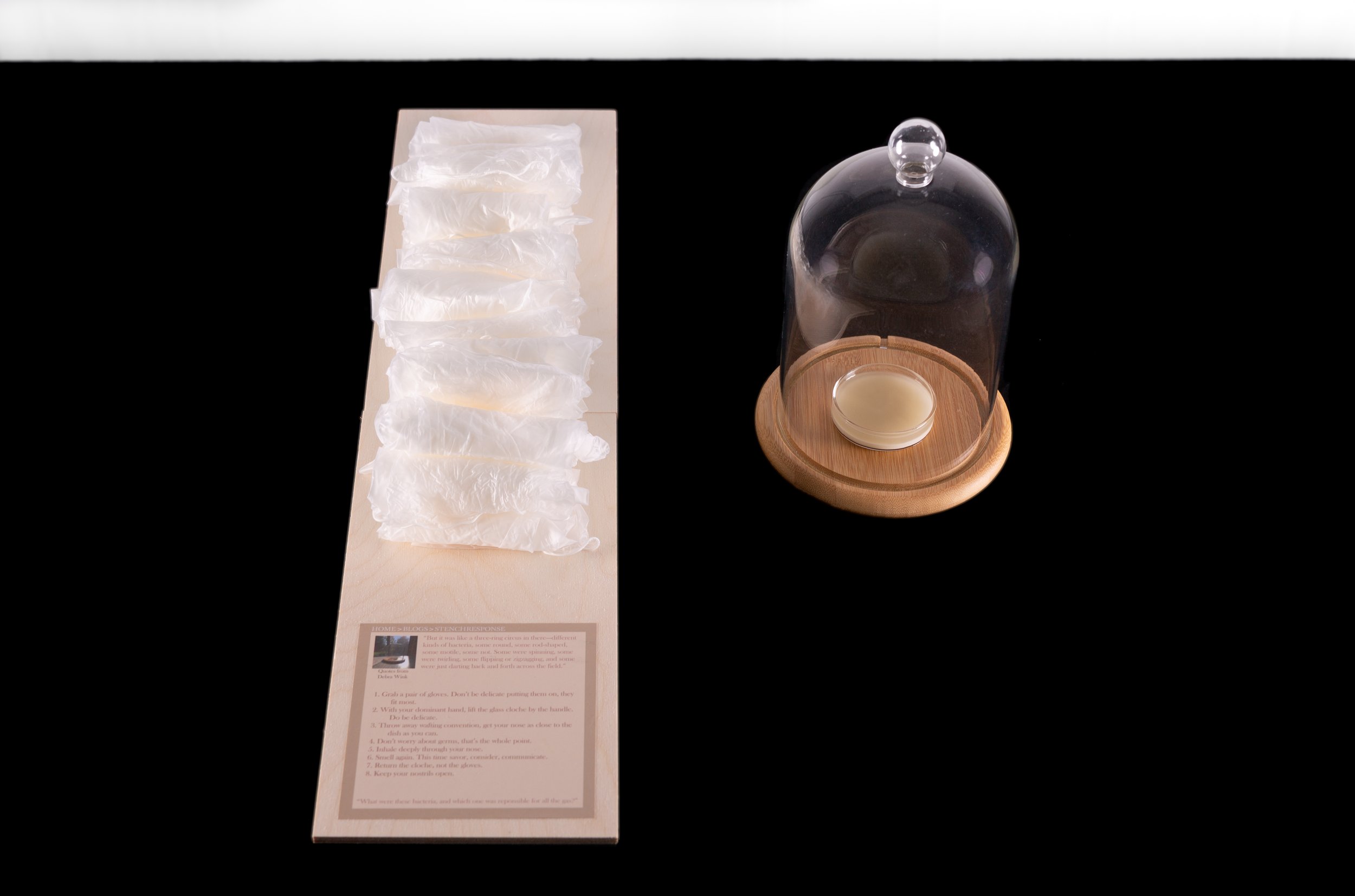 And who is responsible for all this gas? has been presented in sites that activate it’s material and disciplinary connections. First constructed for a microbiology scientific conference (the 2019 Rust Belt Microbiome Conference), it has since traveled to the Pittsburgh Fermentation Festival and most recently the Cake Stand, an exhibition space and performative instagram held out of a glass cloche in Maine. It’s activation through science, community fermentation, and home kitchens create new contexts for the act of smelling.