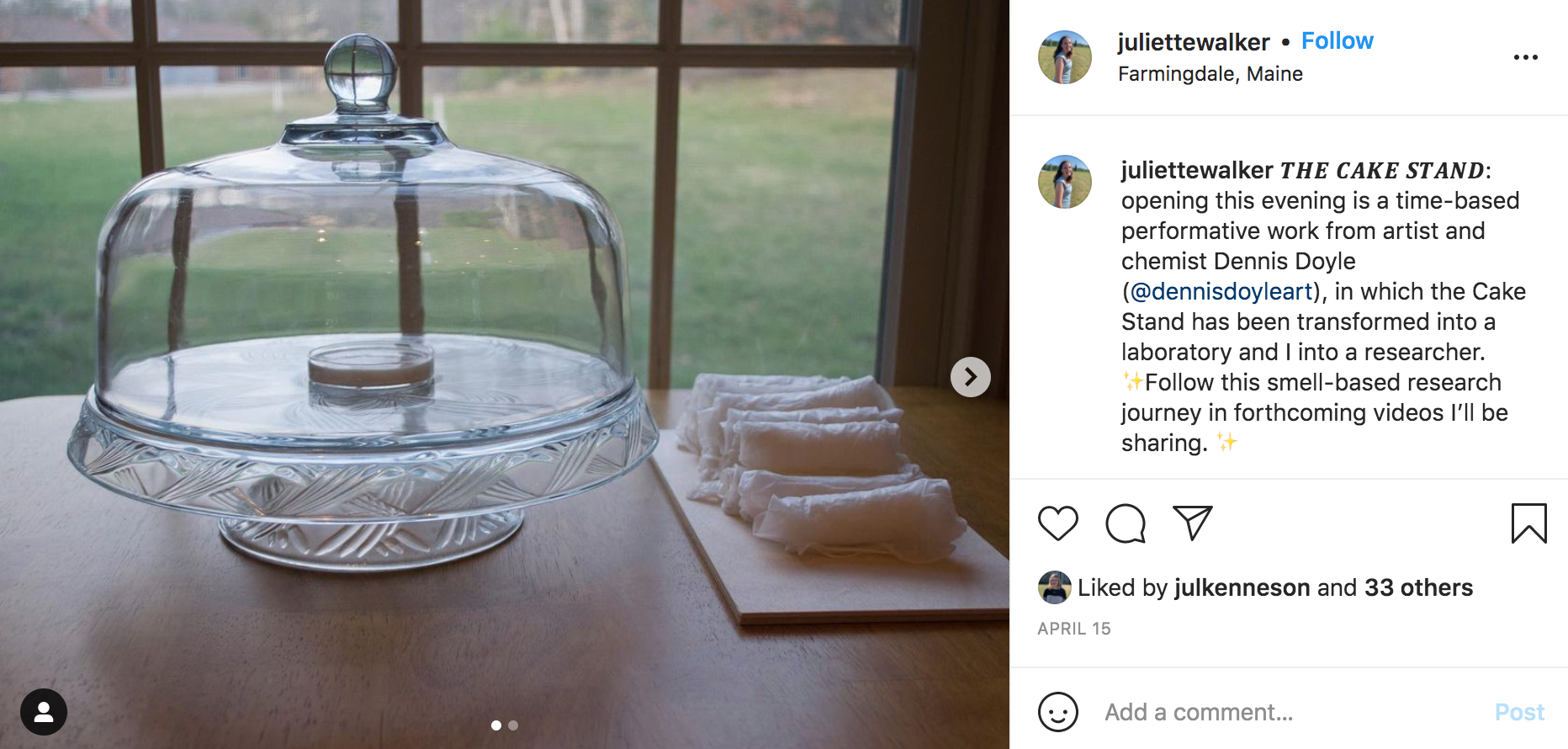 Presentation in 2021 as a part of the Cake Stand Exhibition. The smelling action was recorded each day via Instagram as well as a final performance of pouring the remaining starter down the drain.